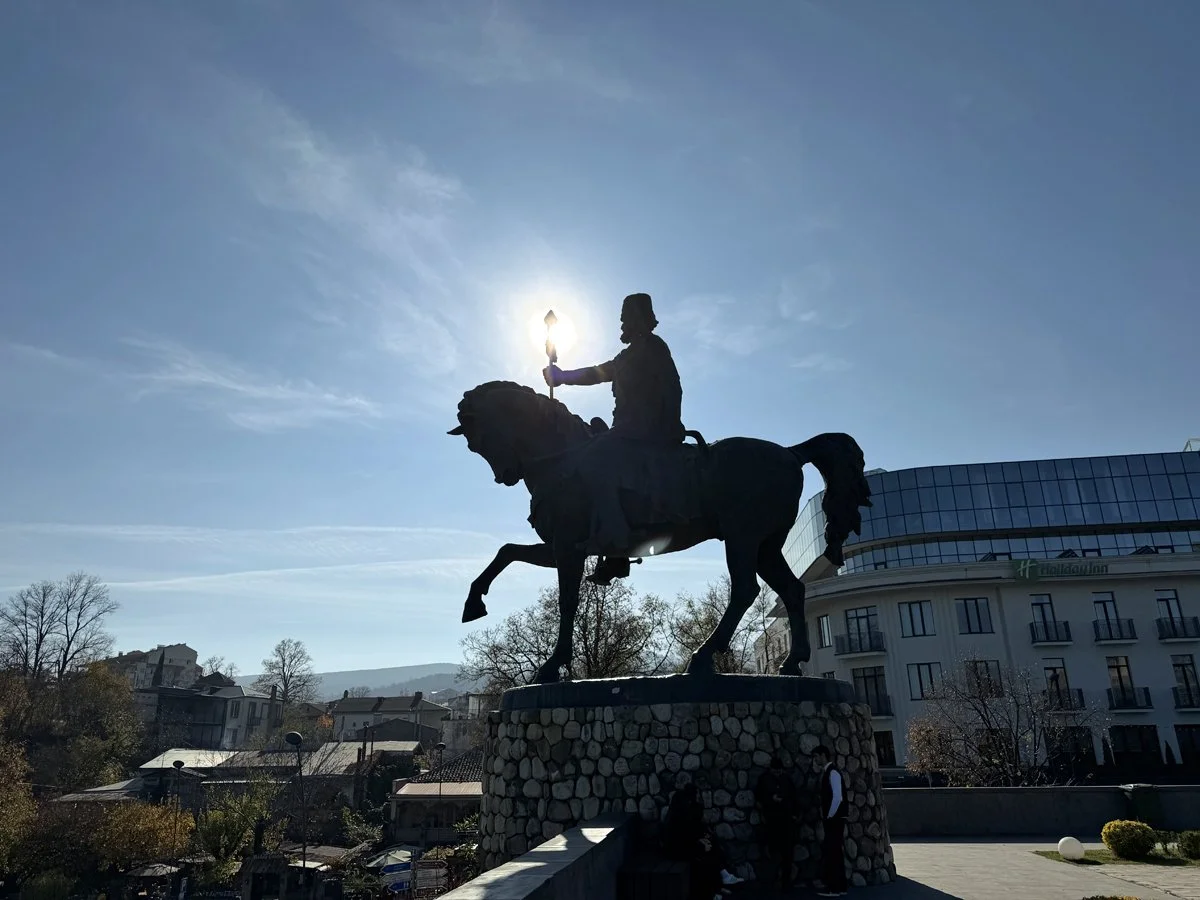 The statue of King Heraclius II (Erekle II). He ruled as King of Kakheti from 1744 and, after 1762, as the king of the united kingdoms of Kartli and Kakheti and attempted to strengthen Georgian independence amid pressure from Persia and the Ottoman Empire. In 1783 he placed his kingdom under Russian protection in hopes of safeguarding Georgia — a move that had complex long-term consequences for Georgian sovereignty.