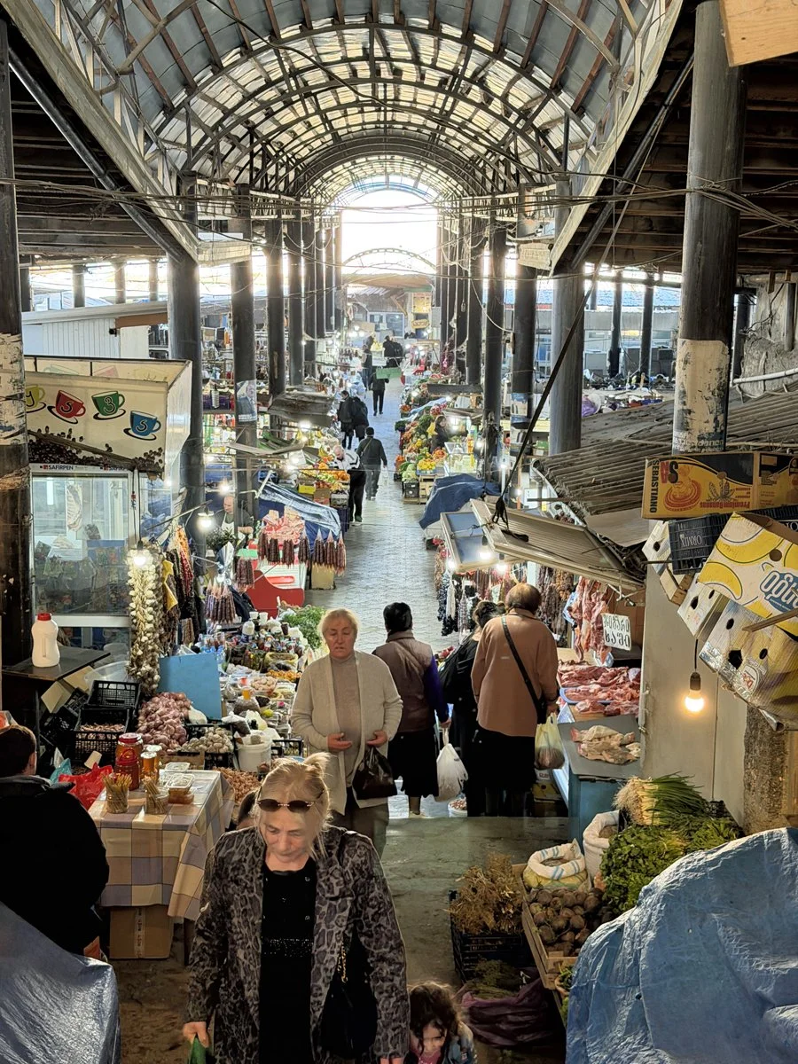 I arrived in Telavi after noon instead of early in the morning. Without having had breakfast, I was ravenously hungry. The minibus station was next to a market, which I found fascinating: cuts of meat I can only dream of. Dutch butchers don’t offer much meat I can use—I want bones and fat included. I don’t eat meat often, maybe twice a week, but when I do, I want it to taste good. Given the strong link between red meat consumption and heart disease, I started to wise up.