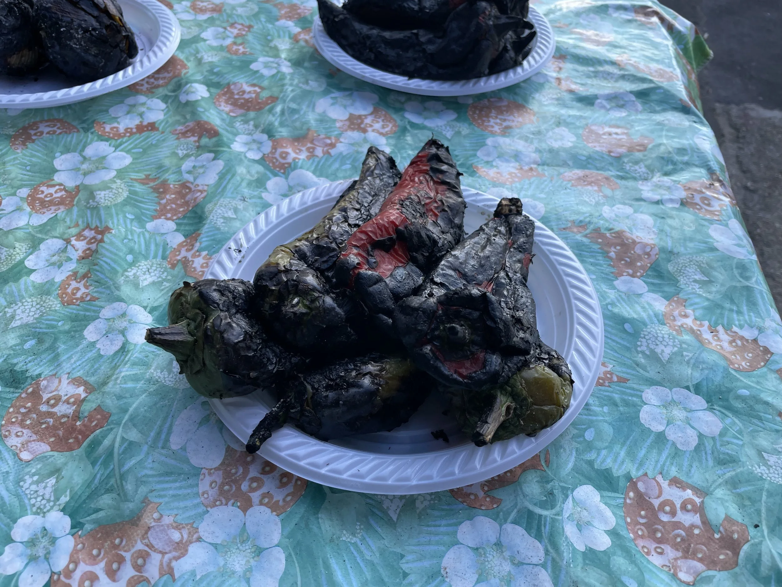 The best food spot near Villa Tania was a small stall run by an older couple. The wife grilled vegetables right outside on the street. They sold fruit, bread, drinks, olives, and their own freshly grilled vegetables.